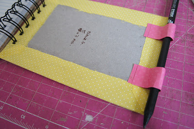 Depois de colar as faixinhas usando como molde um lápis, colei um papel kraft para fazer o acabamento final da contra-capa: