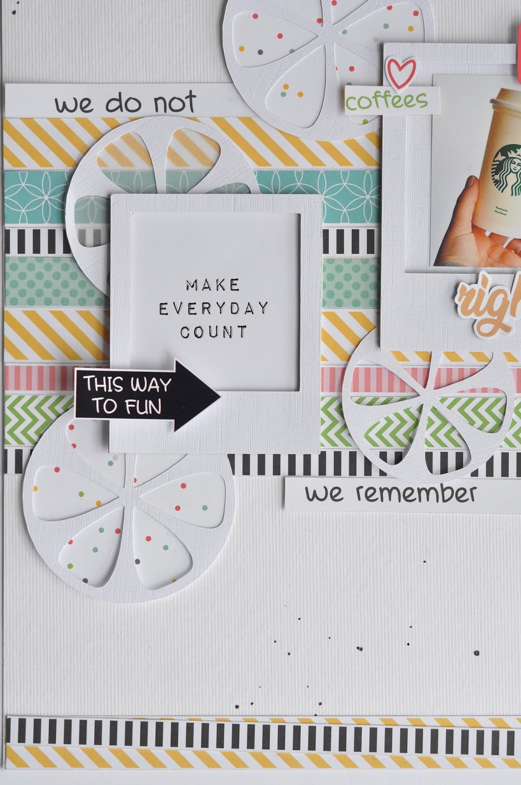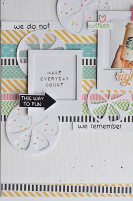 Na minha página, eu usei as barrinhas da folha Enjoy the Day no centro e na borda inferior (eu ainda vou fazer uma pagina inteirinha só delas... Amooo!