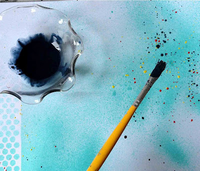 Fiz também uma textura, usando stencil, com tinta branca de craquelar...