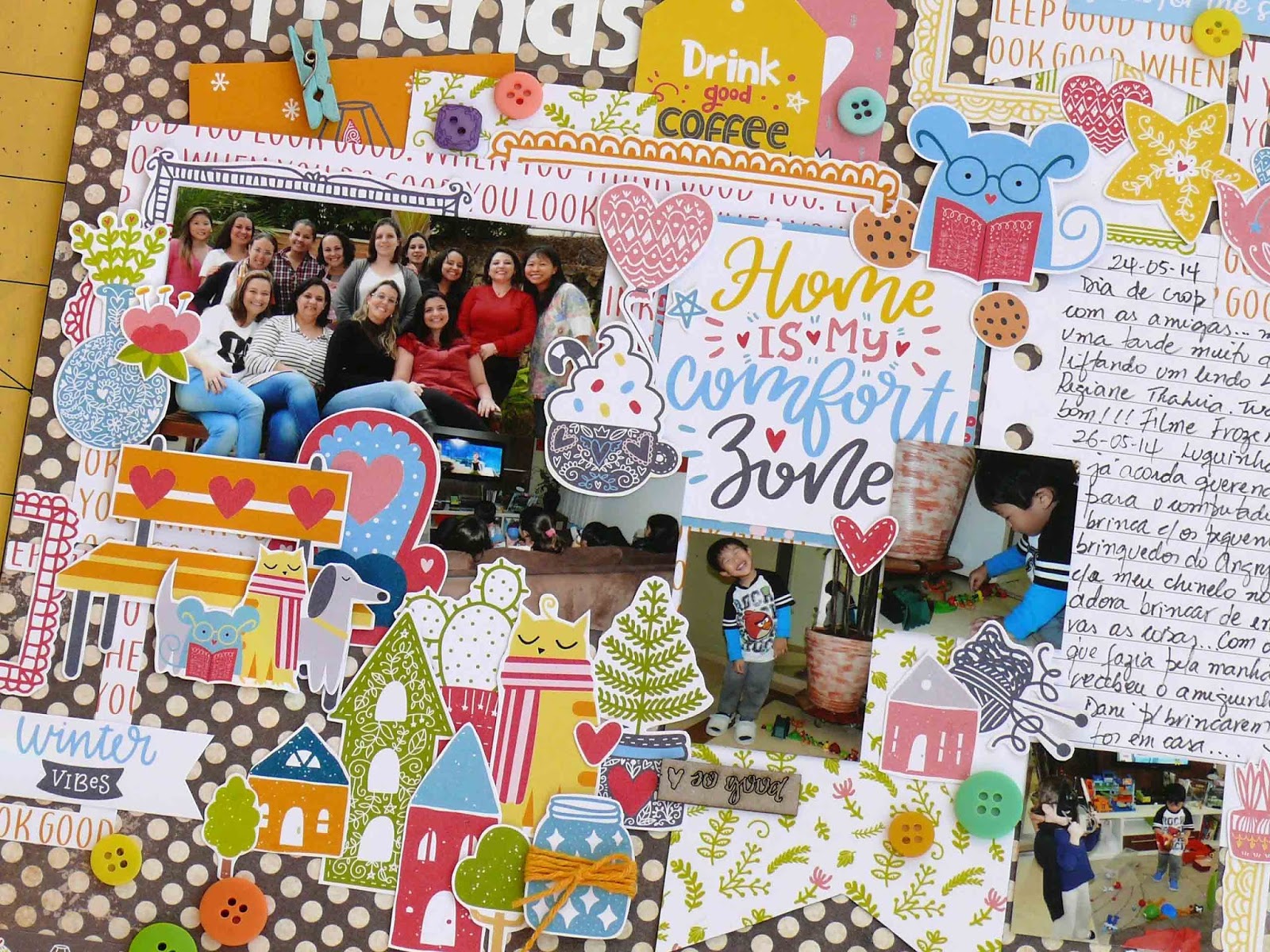 Cortei o card "home is my comfort zone" e colei por cima desse outro para fazer uma moldura e destacar mais o meu primeiro card...
