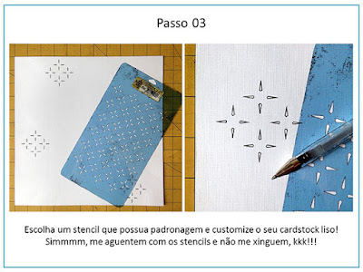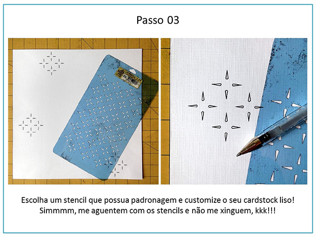 Utilizei um papel azul para a base e contornei à mão livre com caneta branca.