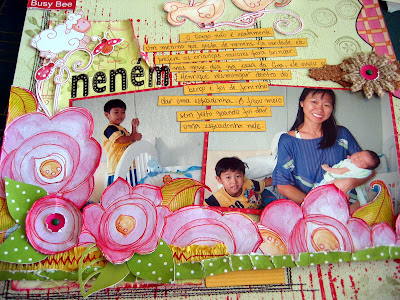 Essas são minhas páginas com o lindo Kiss da Luzinha. Nessa primeira, eu fiz as rosinhas, folhas e voltinhas com as técnicas que a Luzinha ensinou na aula dela na Sampa e no crop que ela deu no Scrapdiary, no dia do lançamento. Aliás, essas rosas lindas ela ensinou no crop. Eu amei.