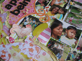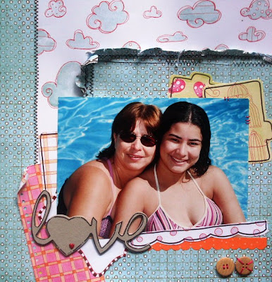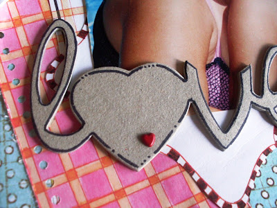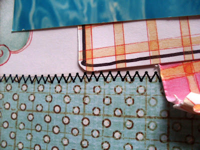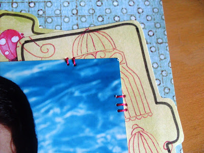 O legal desse kiss é que dá para fazer páginas de muitos temas diferentes. Criança, família, adulto, pensamentos... Essa técnica de papel amassado e molhado ao fundo é também by Luzinha. E também abusei das costuras, porque eu adoro.