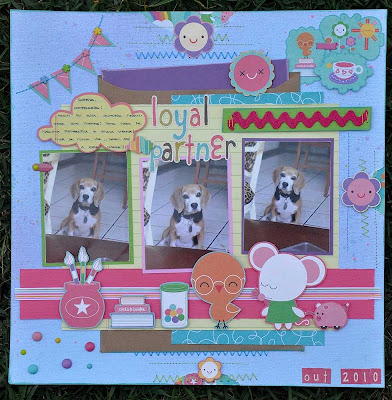 "Meninas, creditem: seguir a Megui não é tão fácil como se parece! Mta responsabilidade! Mas com um LO tão rico de detalhes conseguir aos poucos me inspirar e posso falar? Adorei o resultado. Dois dias antes de fazer o LO minha cachorrinha morreu. Então decidi fazer um LO para lembrar de alguns dos seus momentos... Dentro do envelope de kraft tem mais fotos e mais coisas escritas sobre essa cachorrinha tão querida. Estava guardando essa coleção Nerdy Bird da Sassafras para um LO especial e achei que combinou mto bem!! Espero que gostem. Meninas, foi um prazer!! Quando será o próximo?! rs."