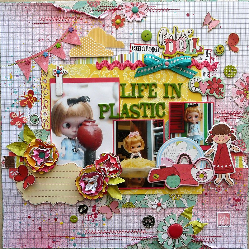 Então fiquei pensando no que usar...aí me vei a mente as bonequinhas da MLS e como eu imaginei que a página da Megui, a cabeça de chave, devia ser bem colorida eu já tinha meus papéis...