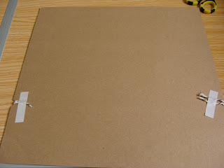 13) Pegue o barbante e passe 2 pedaços dele de lado a lado do cardstock, encaixando nos semicírculos e prendendo atrás com fita dupla face.