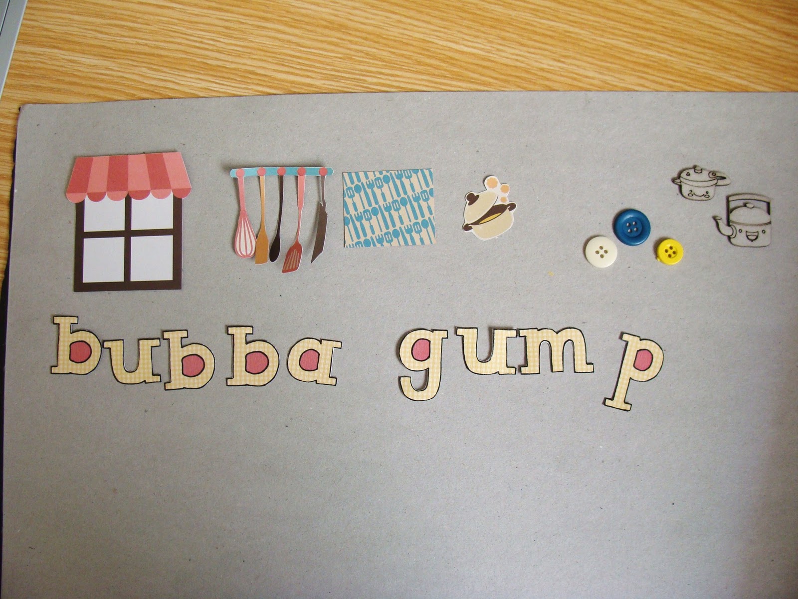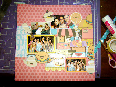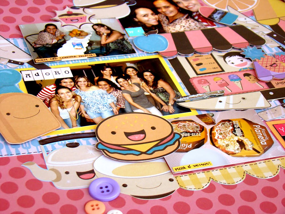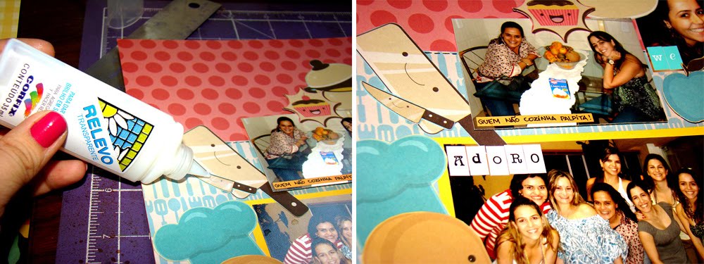 10) Cole o título e a panelinha de papel no retângulo rosa. Eu usei fita banana na panela e em algumas letras.