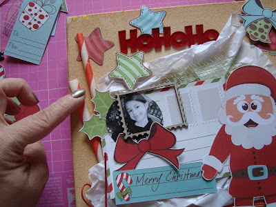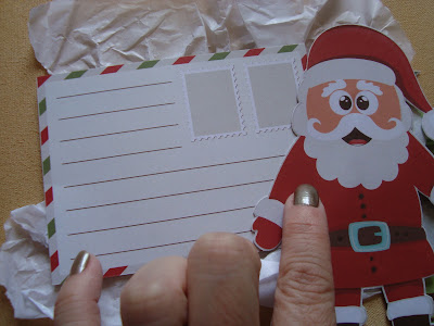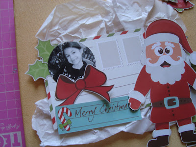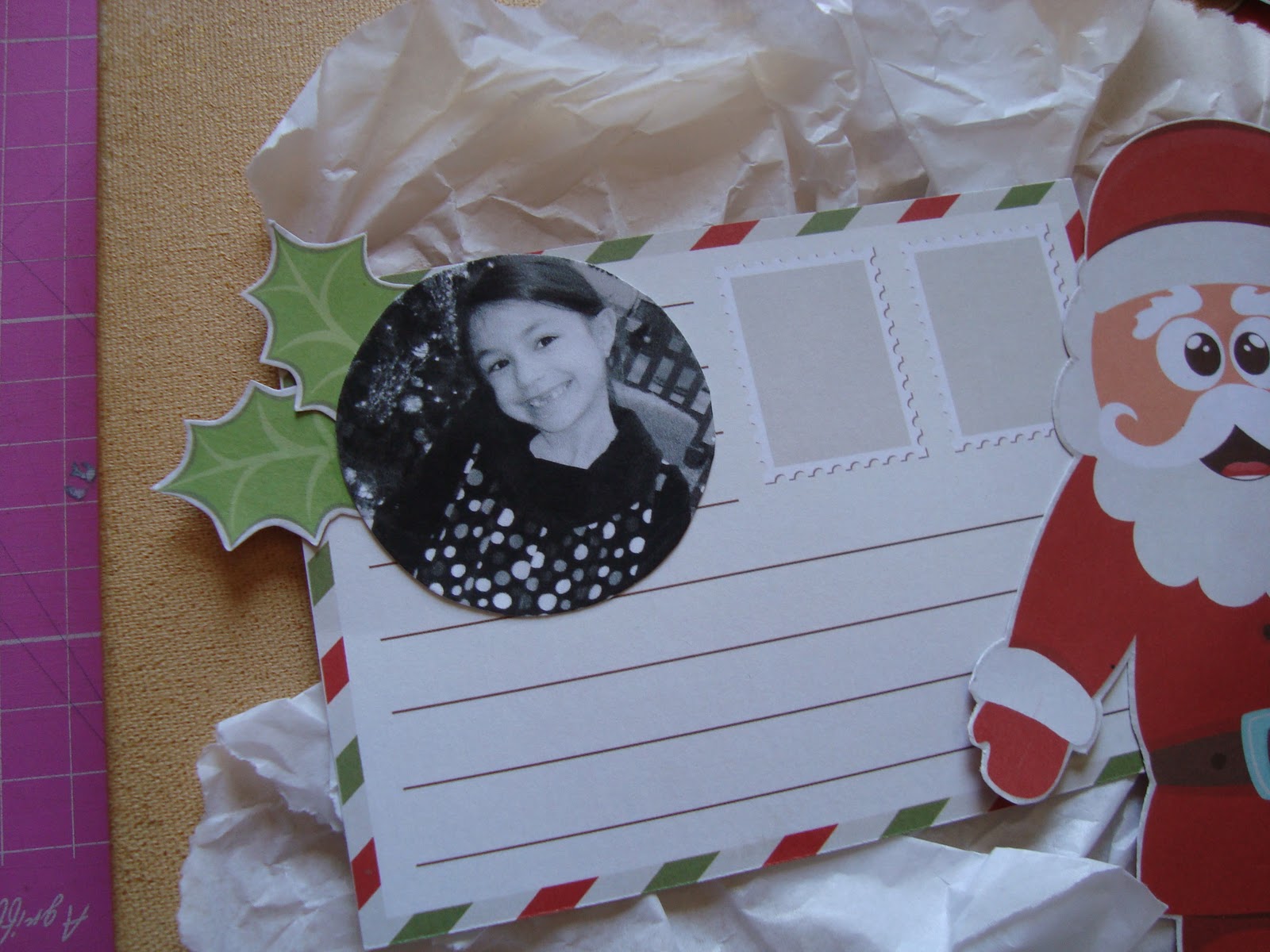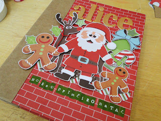 Por cima veio o a cartinha e o Noel, colados com fita banana para dar volume.