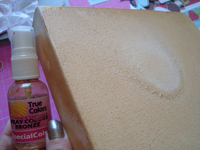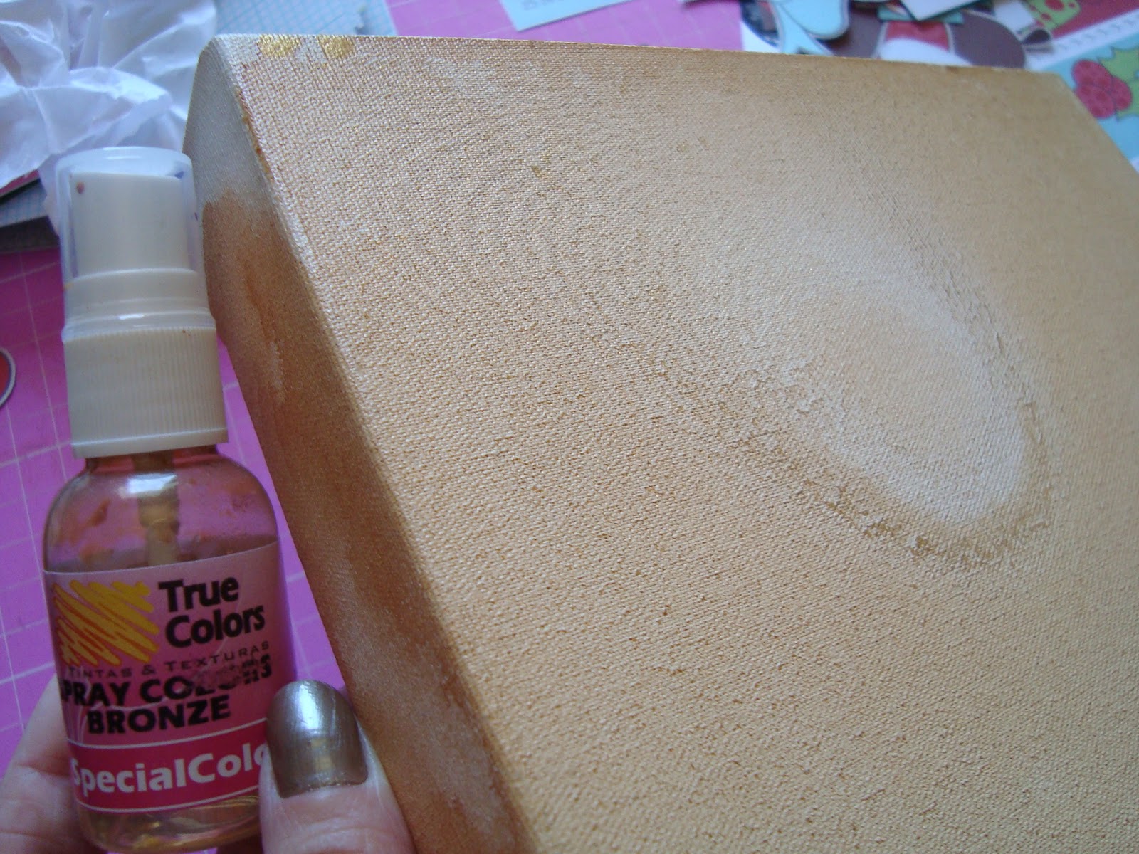 Comecei aplicando o spray Bronze da True Colors, sem me preocupar em preencher todos os espaços e deixando algumas partes meio manchadinhas.