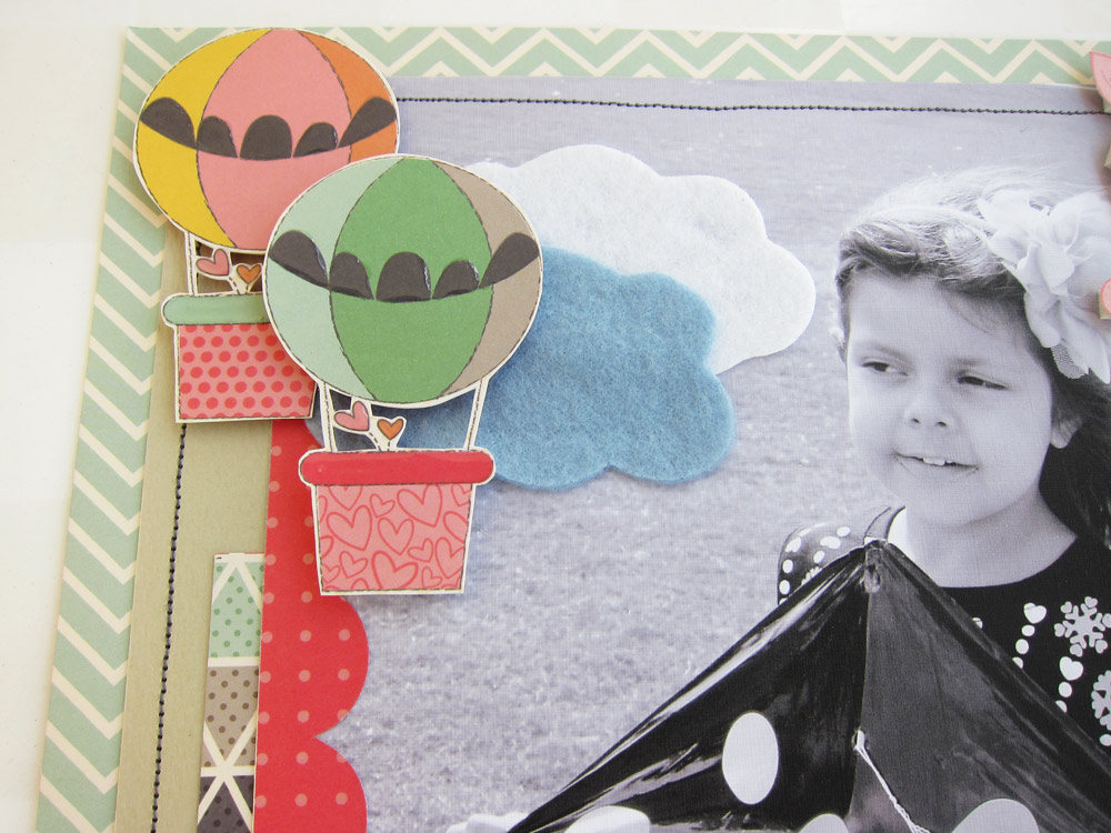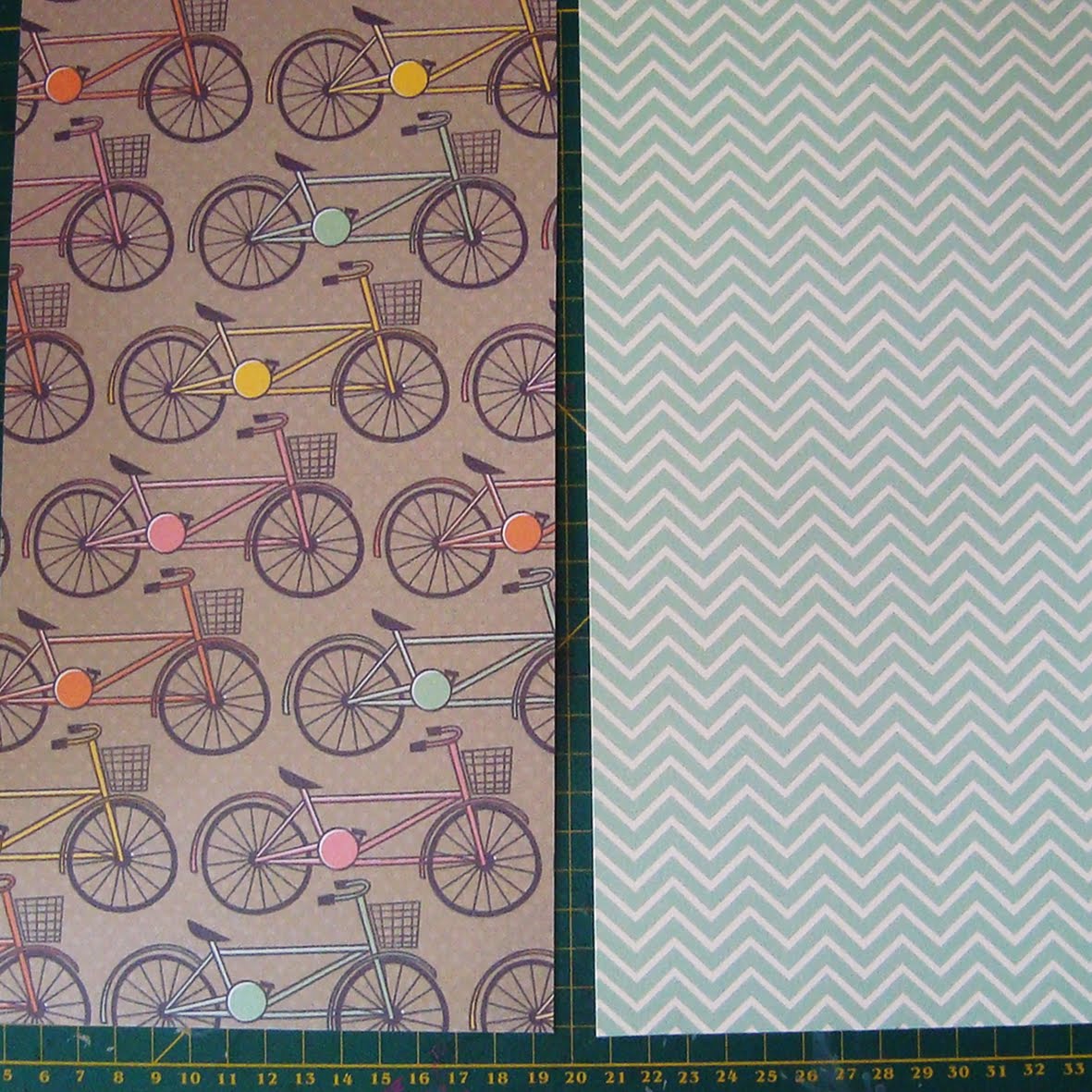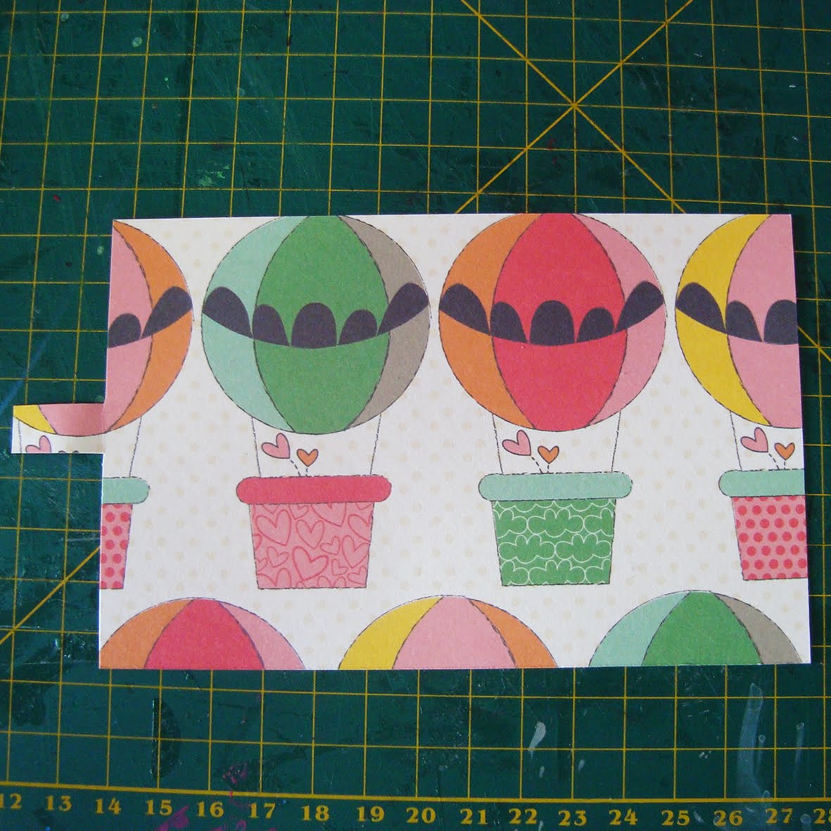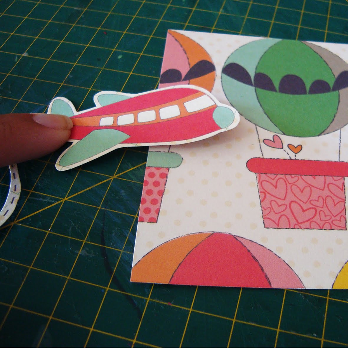 Depois, encaixe as bordas escalopadas dos papéis Around the World e Say Cheese e dois cards de estampa do papel Journey Quotes, como mostra a foto abaixo.