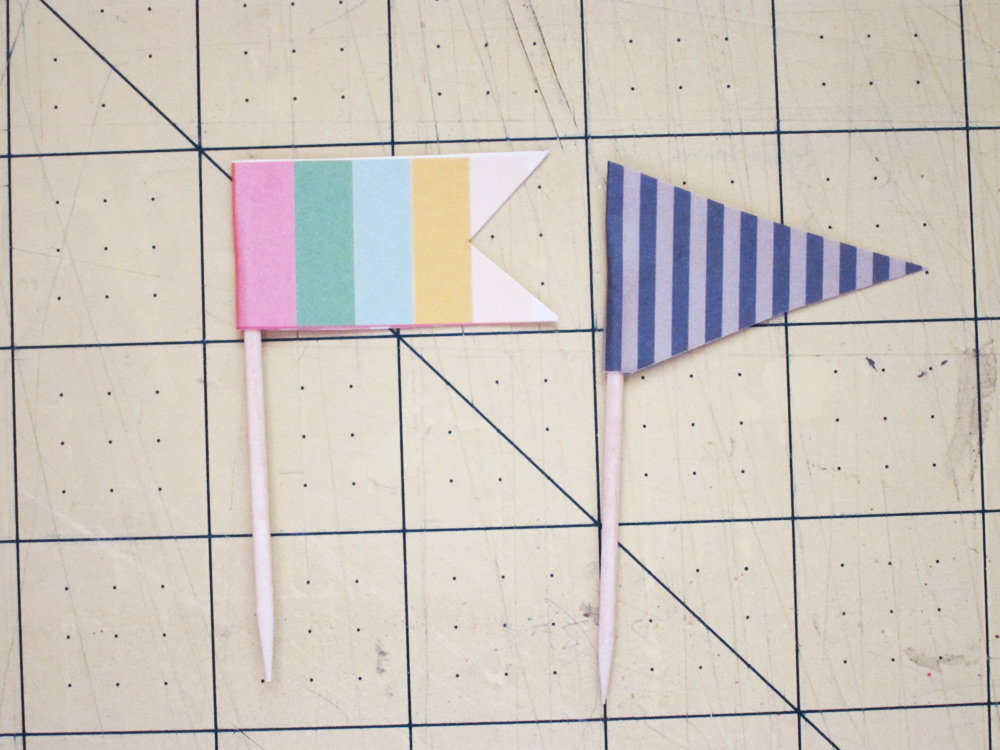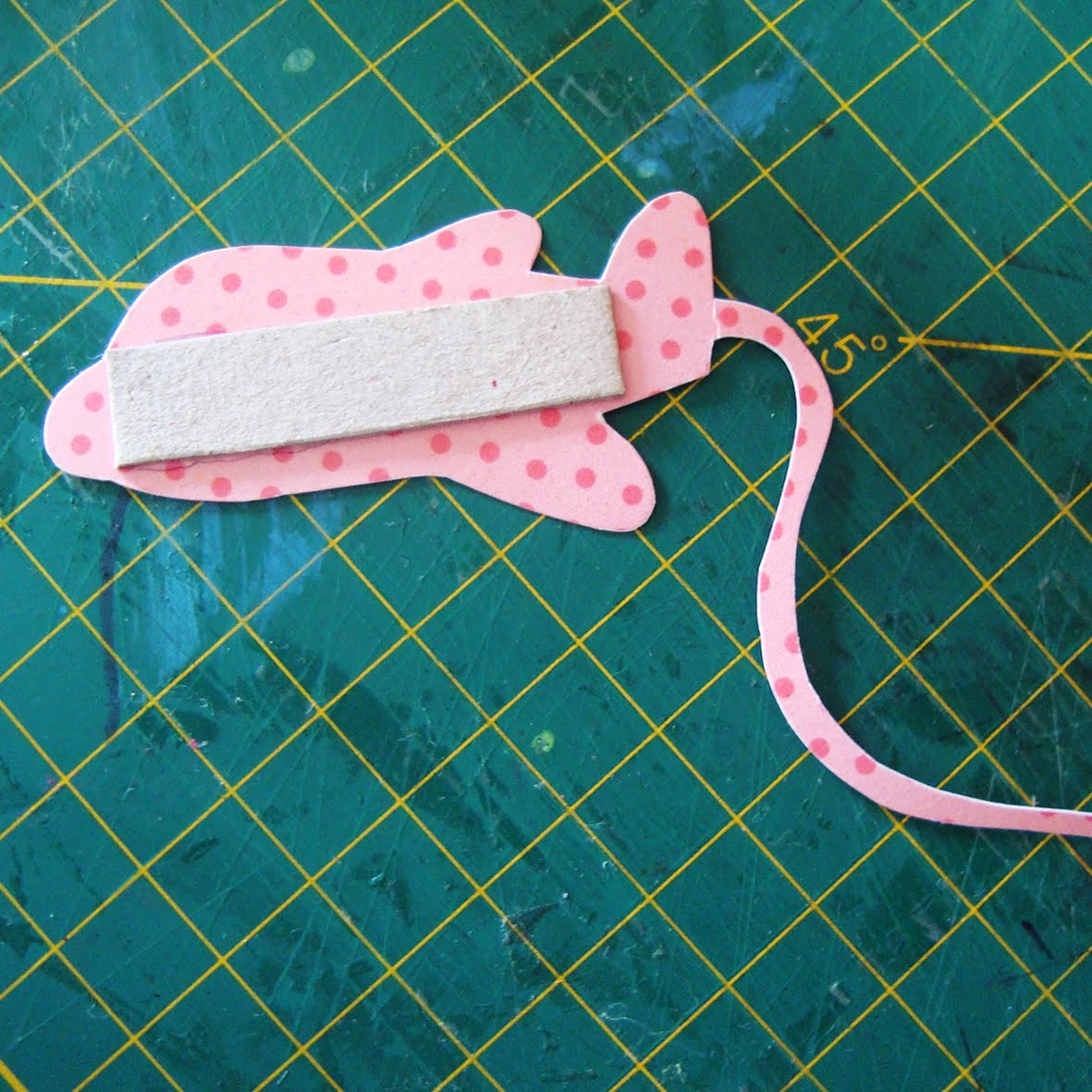Aí, prendi duas etiquetinhas com brads, indicando o tem em cada foto da tirinha de fotos.