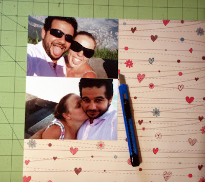 Na parte de baixo da foto, coloquei os dois coraçõe, o vasinho e as flores.