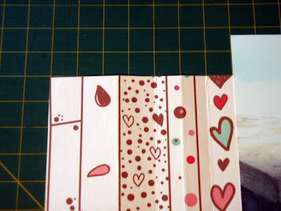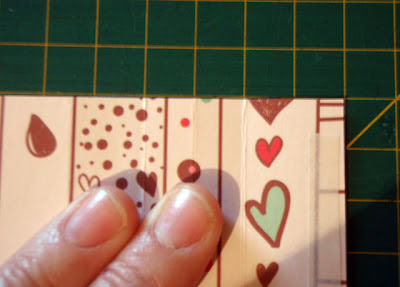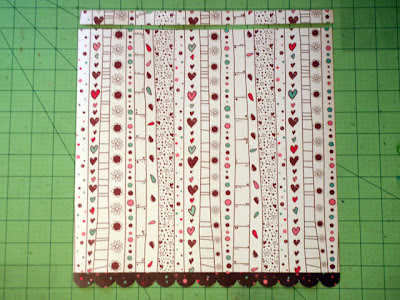 Pegue o papel Jesse & Celine e picote uma tira de 30,5 x 14,5. Com a régua, meça 2 cm de margem e recorte e reserve.