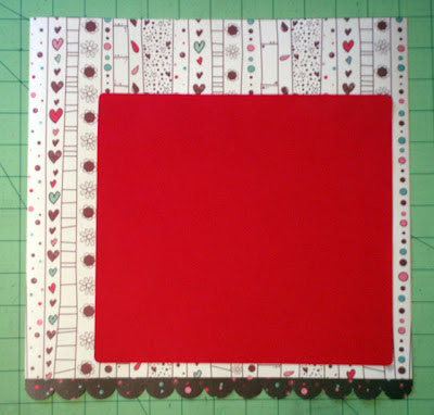 Por cima do envelope, você vai colar a moldura que você reservou no passo anterior. Sobre ela, você vai fazer uma outra moldura menor com o papel Dexter & Emma. Ela vai medir 14 x 4,5 e a margem deve ser de 1 cm.
