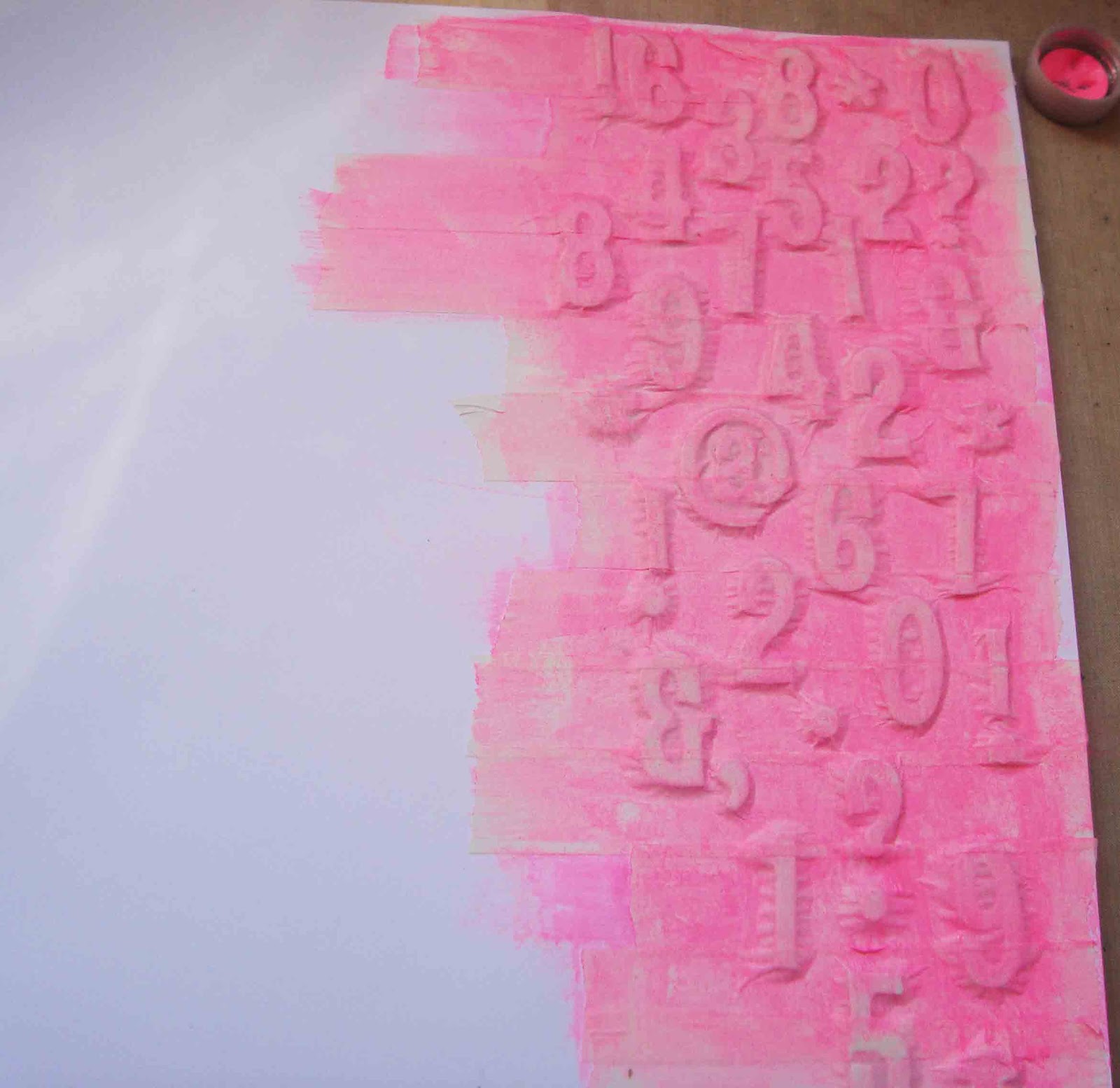 Legal né? A borracha arranca a camada de tinta do relevo que as letrinhas deram com a fita crepe!