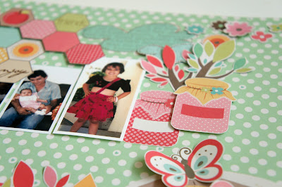 Vejam no detalhe que eu colei o passarinho de resina, ainda recortei umas folhas e fiz uns caracois no cabinho das flores.