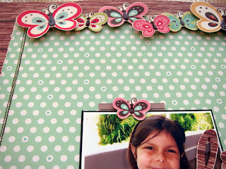 Complete o LO com uma série de borboletas do papel Butterflies, em camadas na parte de cima do quadrado verde água!!!!
