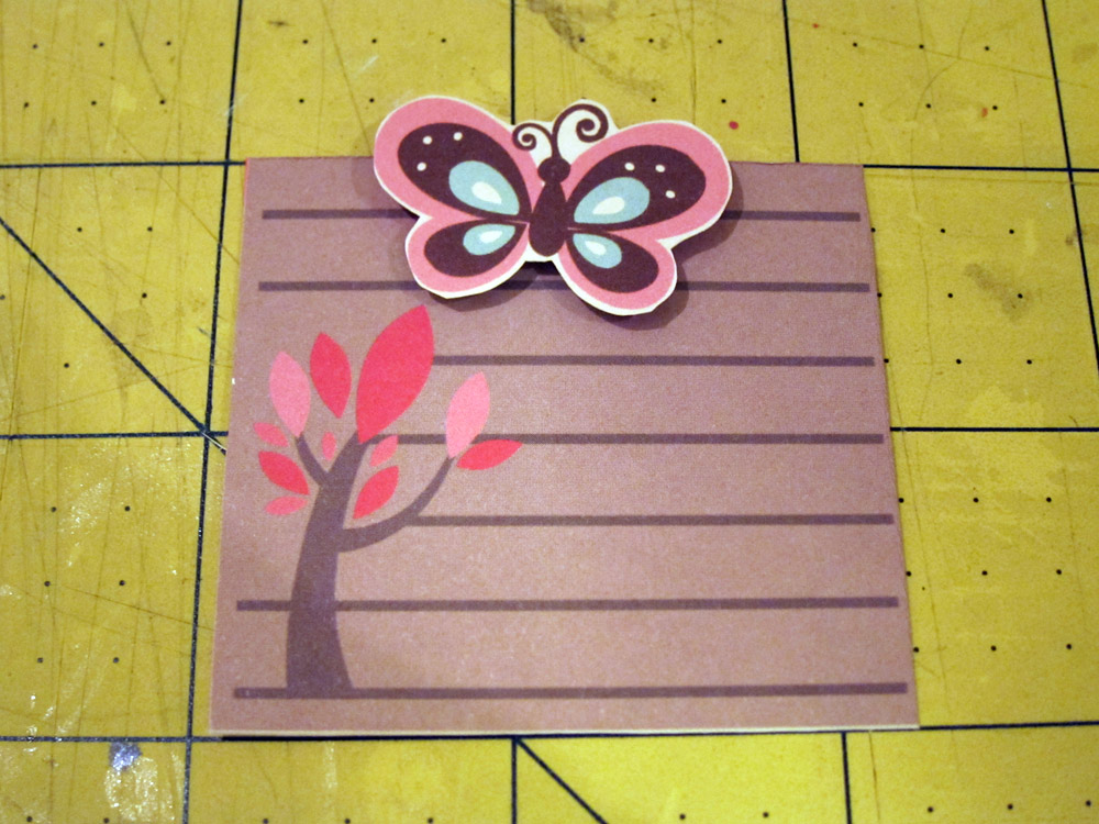Cortei um card do papel Cards e colei uma borboleta pequena do Butterflies com fita banana para fazer meu journaling.A fita banana ficou só na parte de cima do card, para podermos encaixar a borboleta sobre a foto.