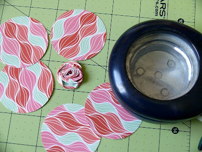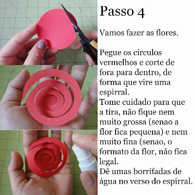 Cortei alguns círculos com 5cm de diâmetro, usando um furador, para fazer as rosinhas.