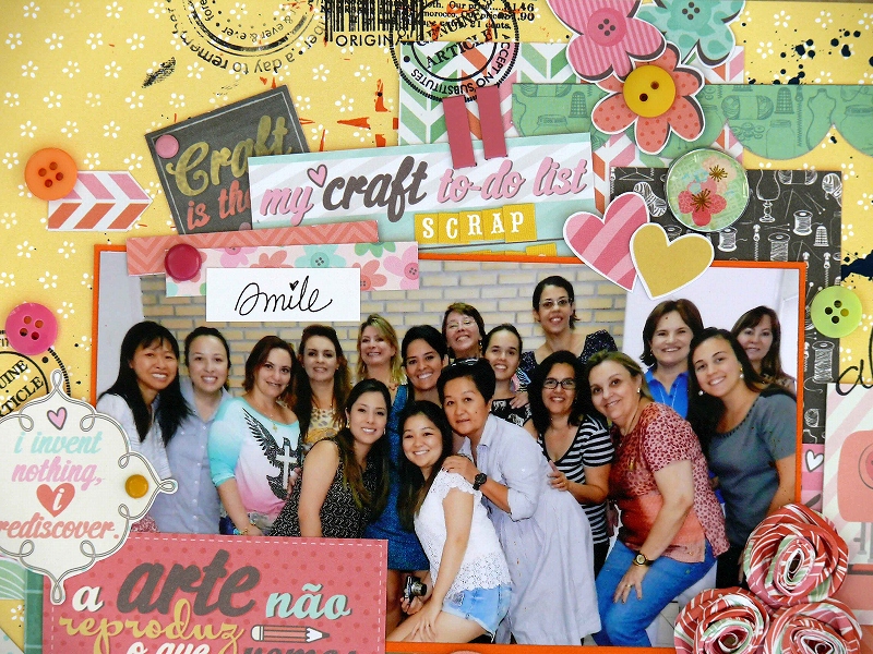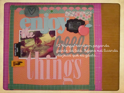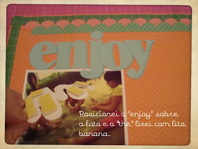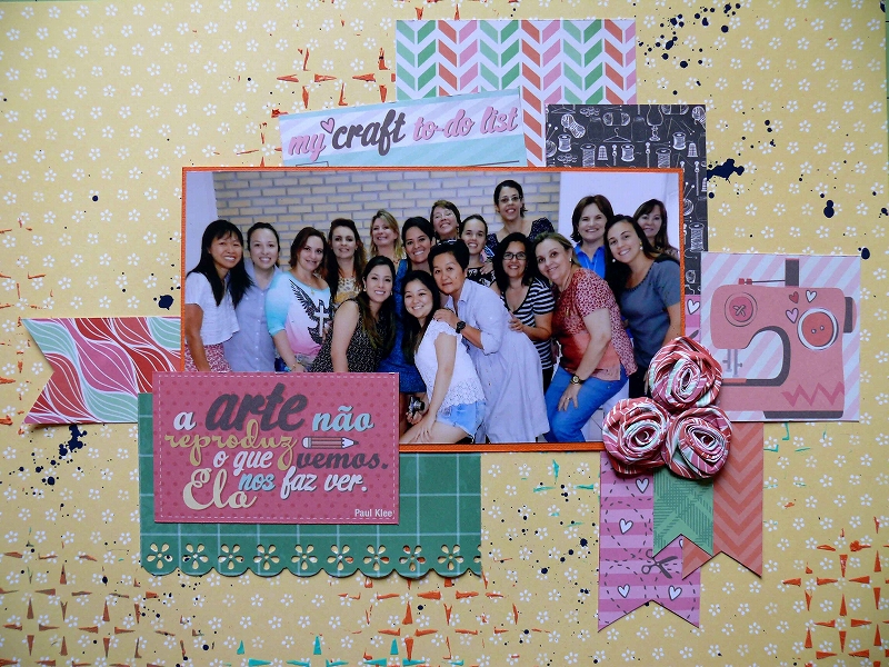 e cole-os junto com o card "My Craft to do list", a foto e o outro card...mas por enquanto cole somente a parte central da foto, pois vamos encaixar algumas outras coisas por baixo.