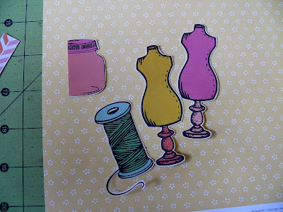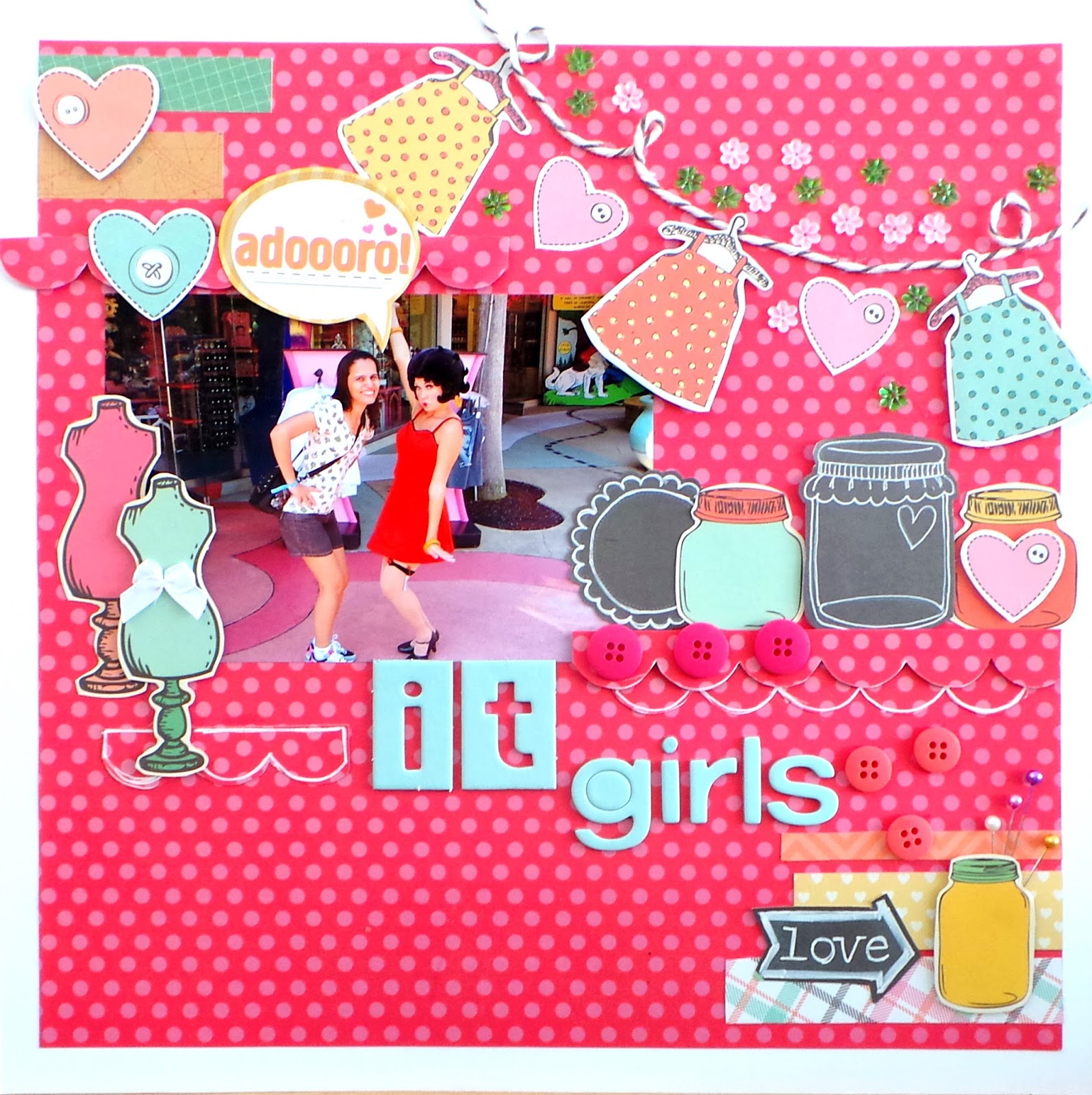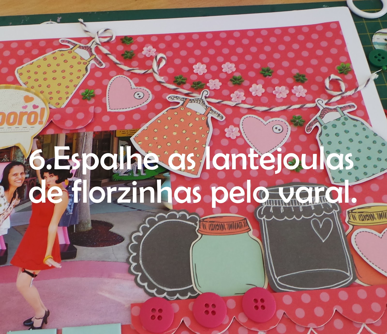continue enfeitando a pagina, colando duas rosinhas ali no pé dos manequins...