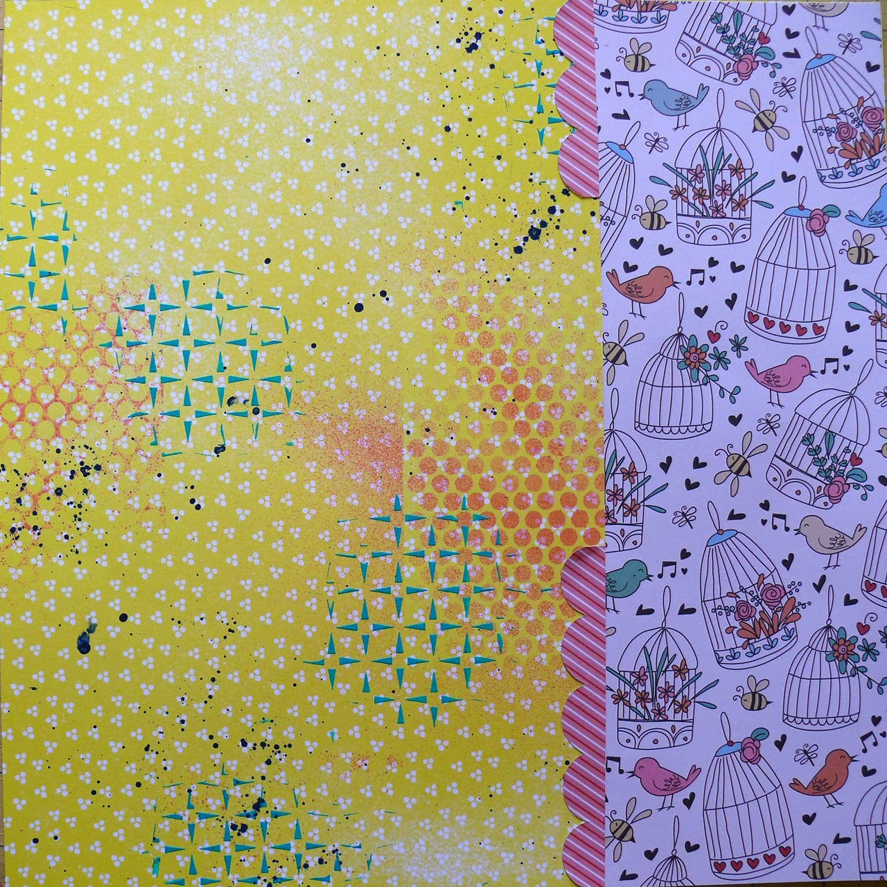 Depois que a tinta secar, corte 1/3 do papel de gaiolas e cole ali do lado direito da pagina.