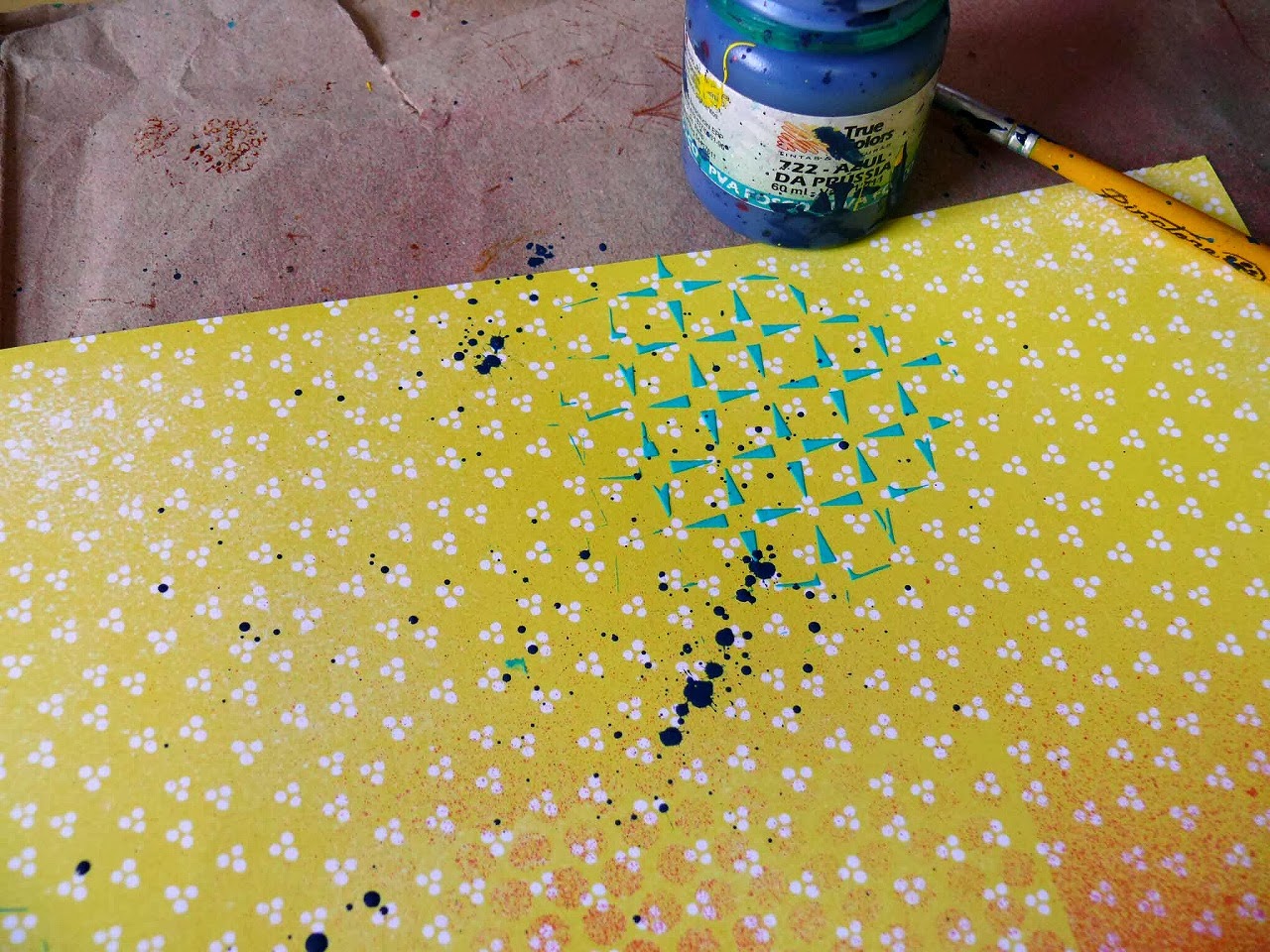 eu gosto de dar batidinhas na superfície, usando um batedor de tintas...