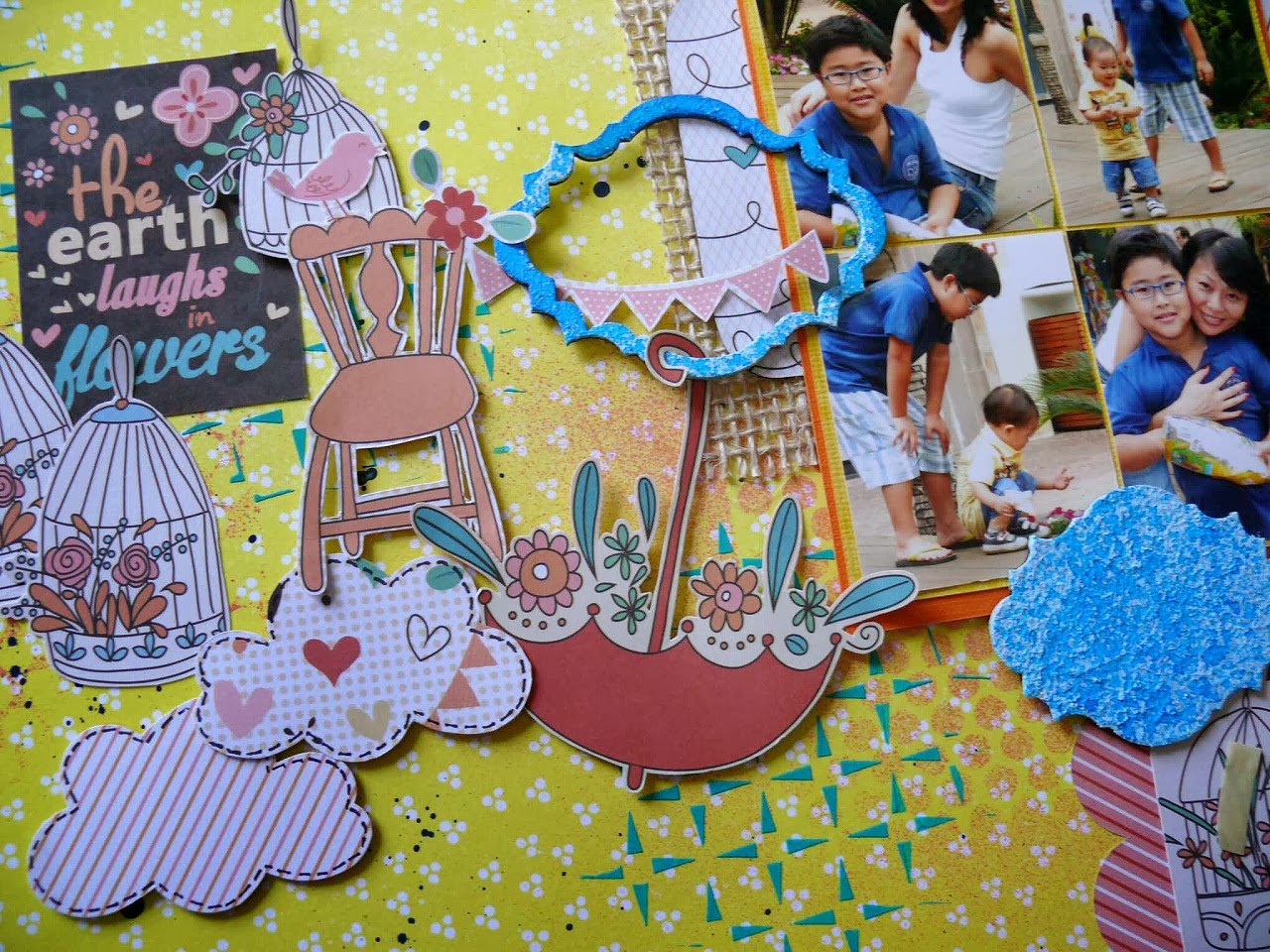 cole algumas gaiolas, nuvens e o guarda-chuva, com fita banana.