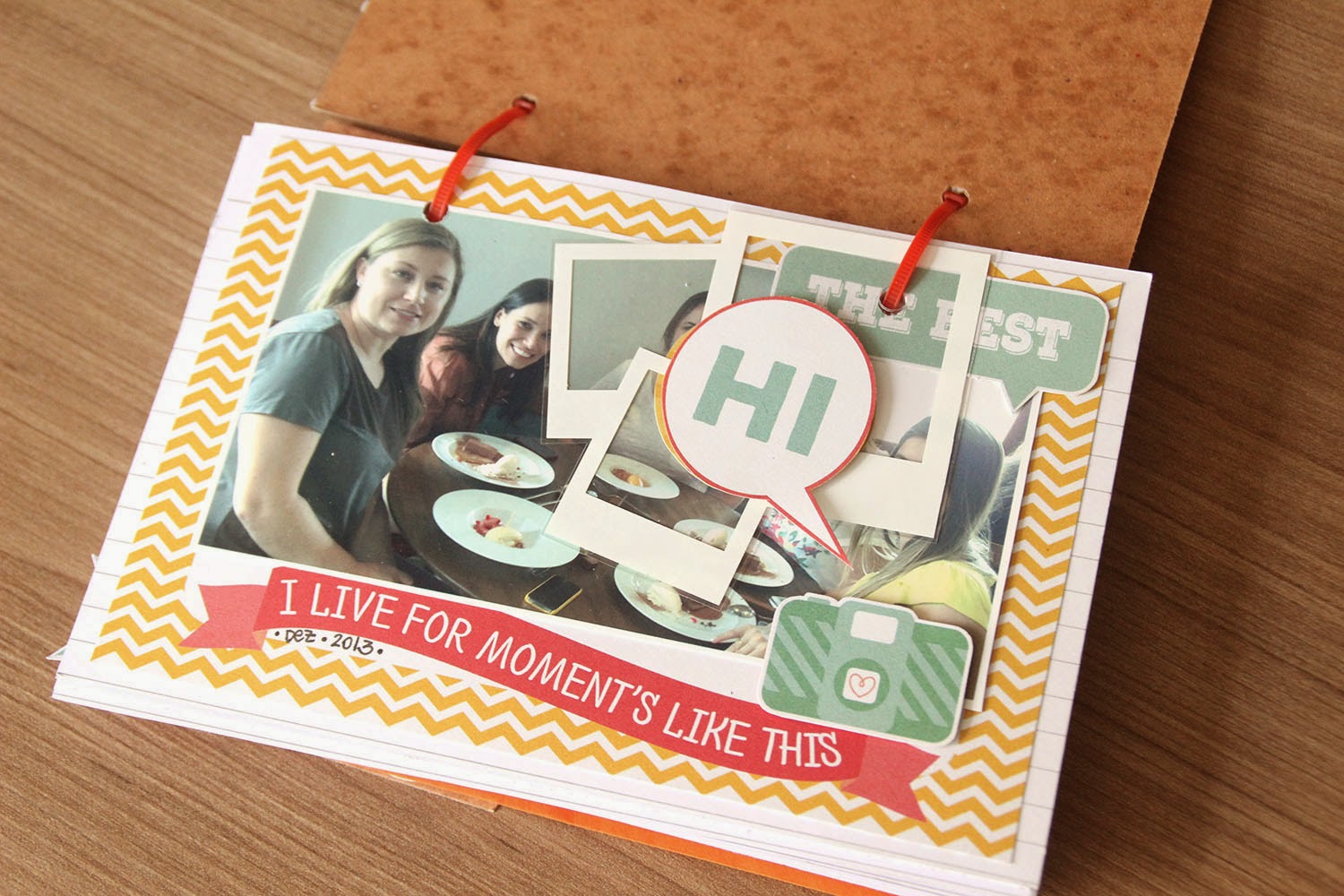Sempre fui apaixonada por mini álbuns e, ao longo dos anos, descobri o segredo para não me estressar com os projetos que nunca terminam: manter o mini, mini. Parece óbvio, mas, é verdade! Quando a gente começa a complicar, botar muitas coisas e muitas páginas, o projeto fica longo e a gente começa a enjoar de fazer a mesma coisa durante muito tempo. O melhor a fazer é começar e terminar o mini de uma vez só, com o que tem na mão. E quando você tem na mão um kiss super lindo, é fácil!
