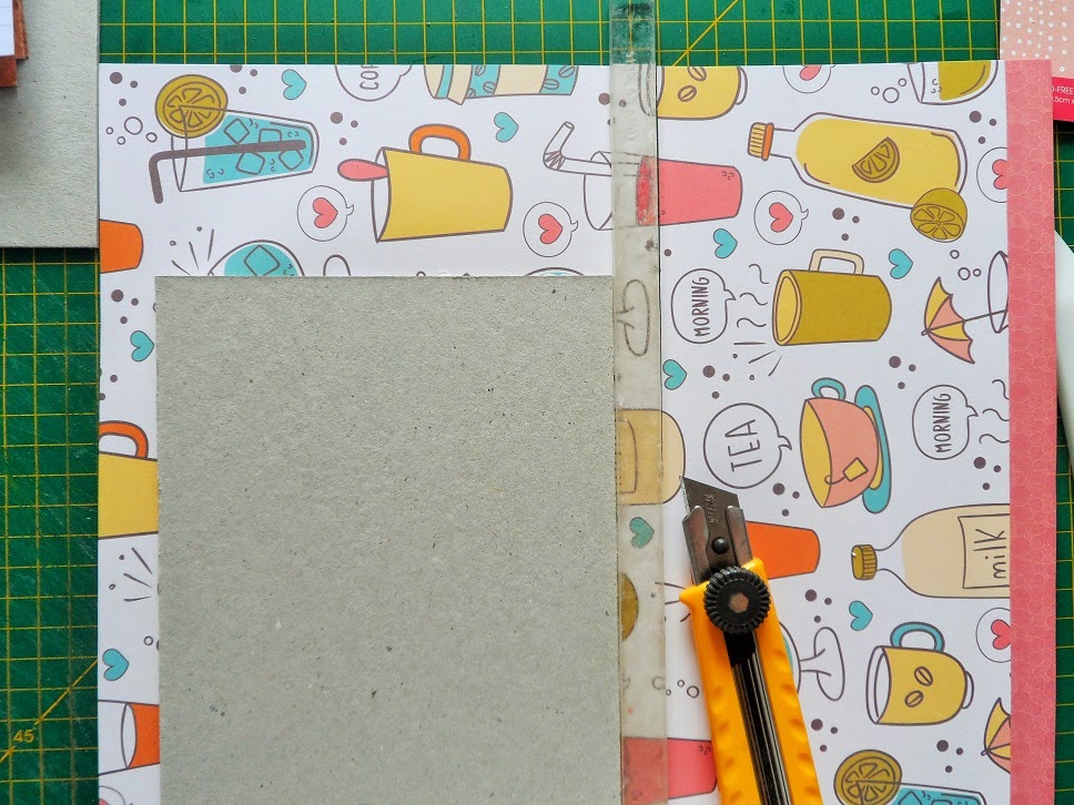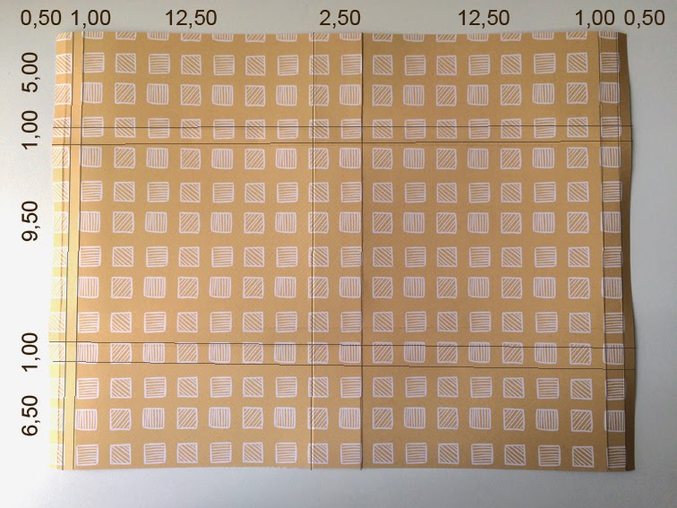 Comecei cortando 15,5 cm da folha Store. Fique atenta ao sentido
