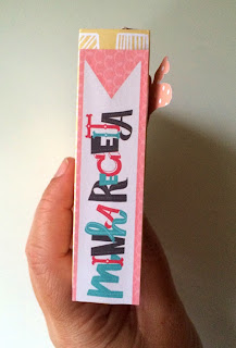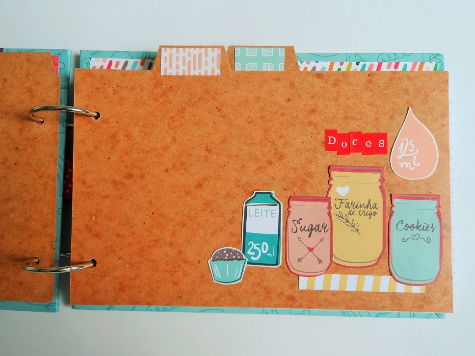 Na lateral, colei o recorte “Minha Receita” na lombada.