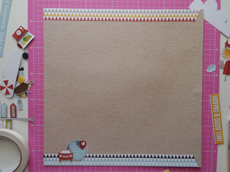 Comece colando, a tira amarela, juntamente com mais dois pedaços de papéis que você vai encaixar por baixo da tira amarela.