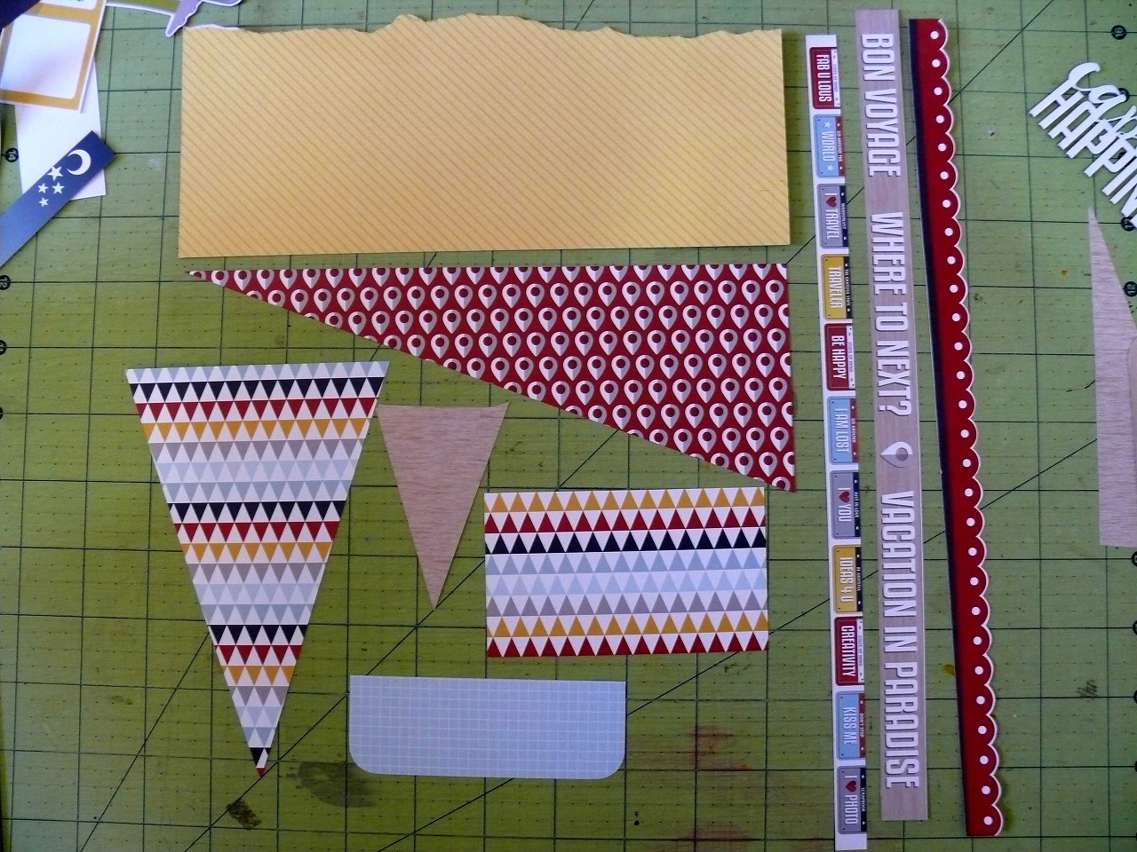 Em seguida, cole o papel triangular, que brinquei com os lados usando medidas diferentes e cole as outras 3 tiras mais finas...