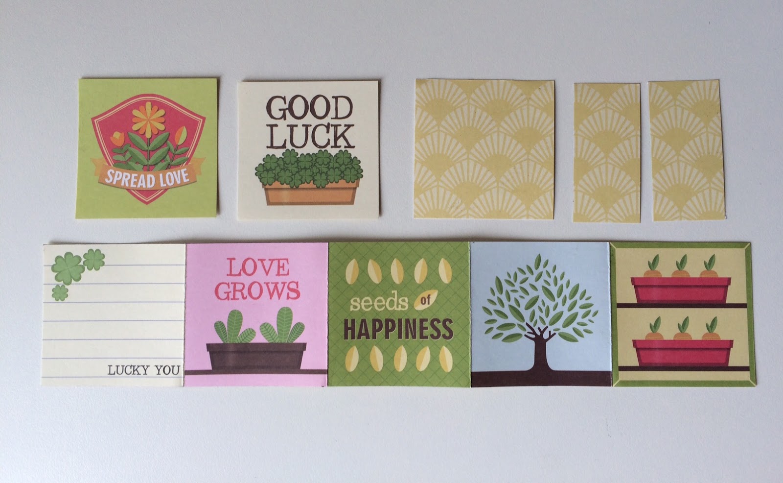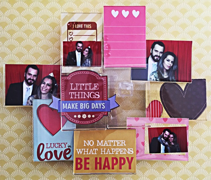 - Dentro de 9 dos 10 retângulos existentes em meu porta-retrato acrílico, coloquei estes elementos.
