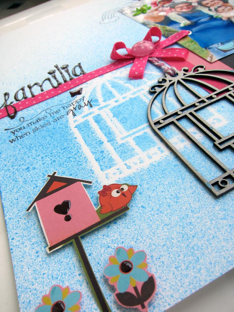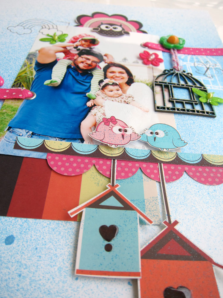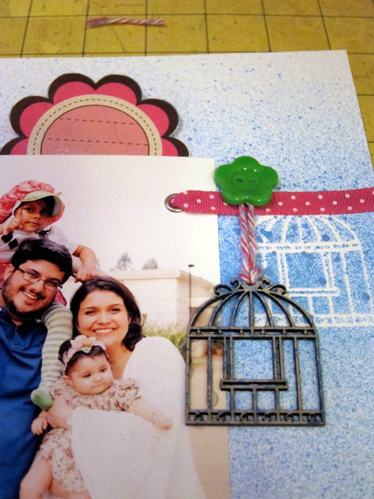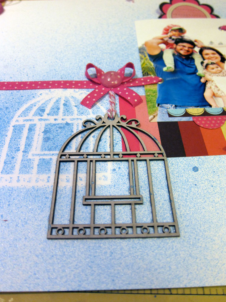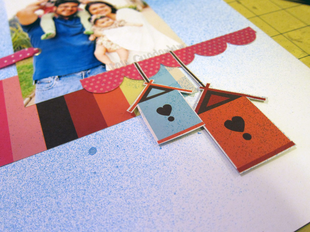 Cole sua foto, seu shaker box, os quadradinhos e mais alguns retangulos que desejar sobre o papel Sushi. Eu usei 2 bordas dos Printables. Deixe aproximadamente 0,5cm de distancia entre cada figura. Percebe como eu preenchi os espaços?