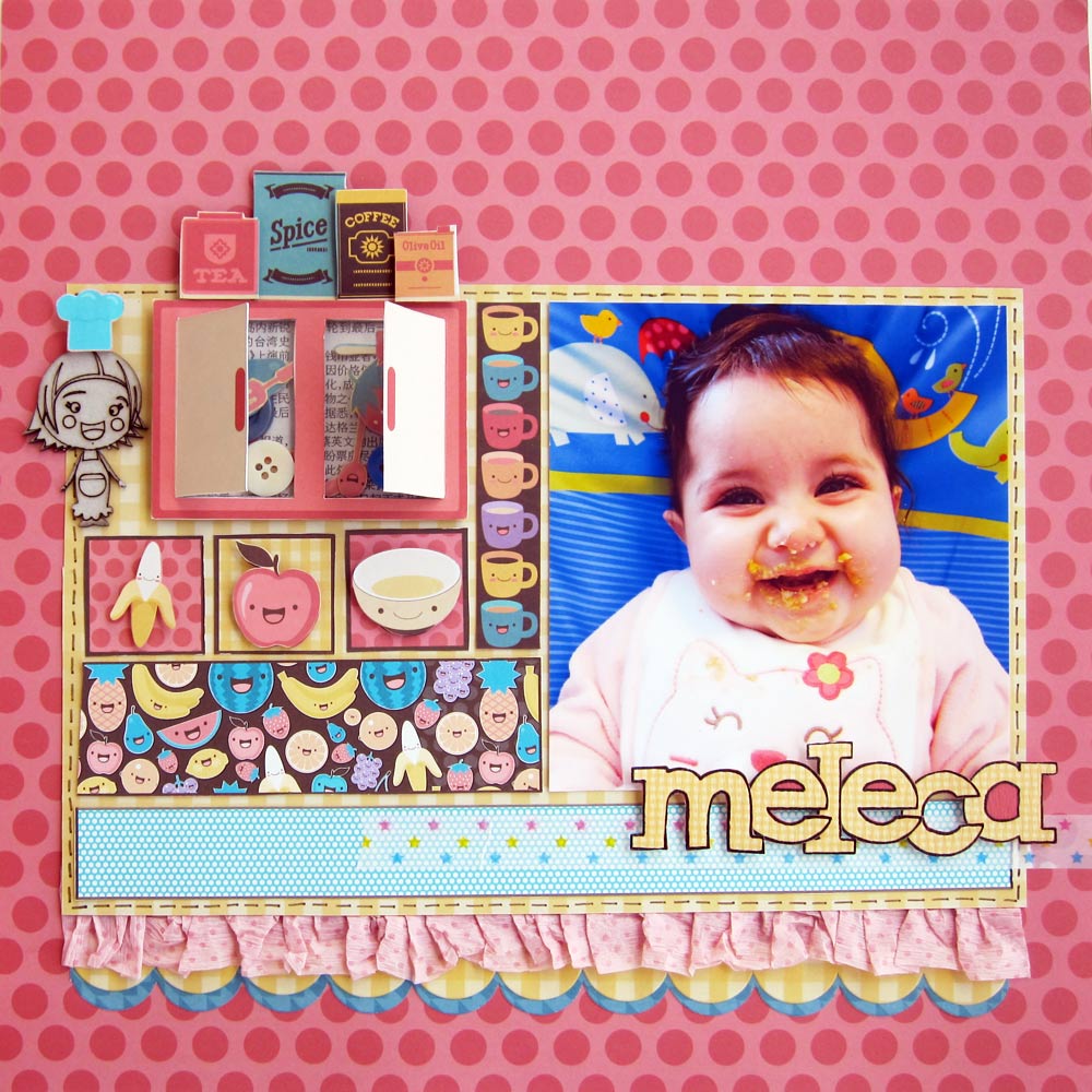 Cole uma figura de chipboard ao lado do shaker box para preencher o espaço vazio..... Cole ainda os "mantimentos" em cima do armario.... Use e abuse da fita banana!!!!