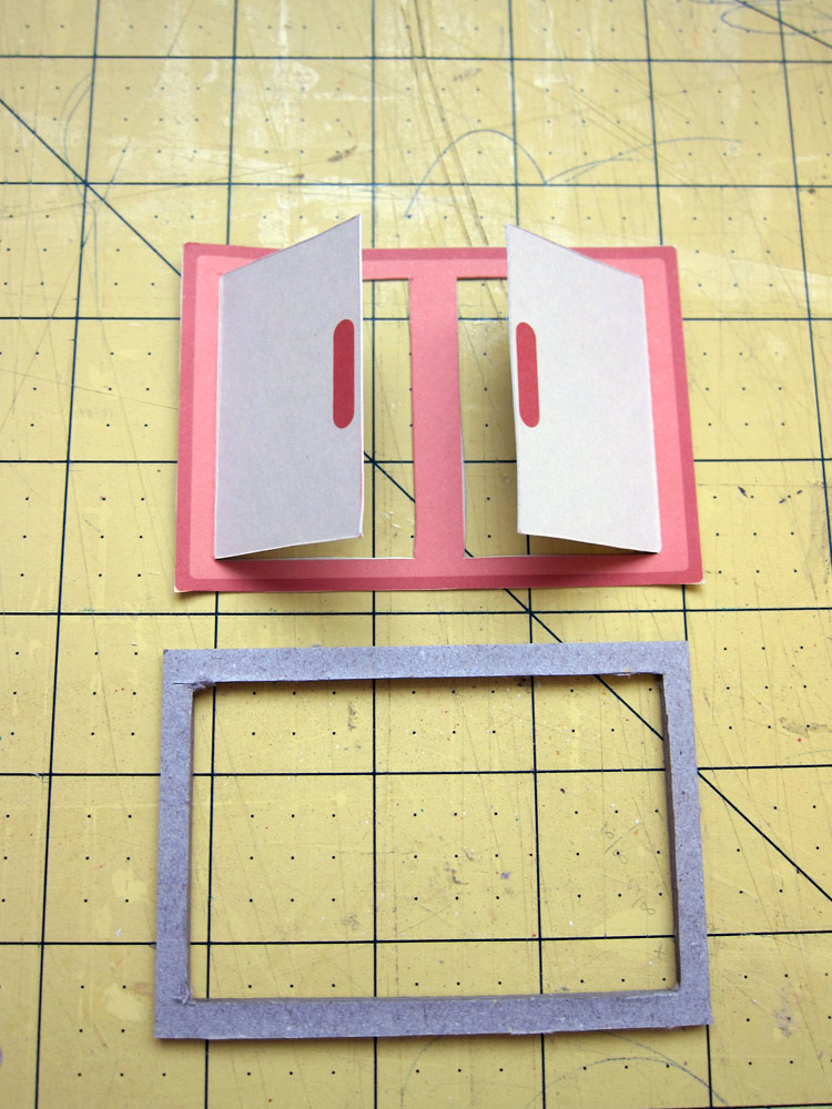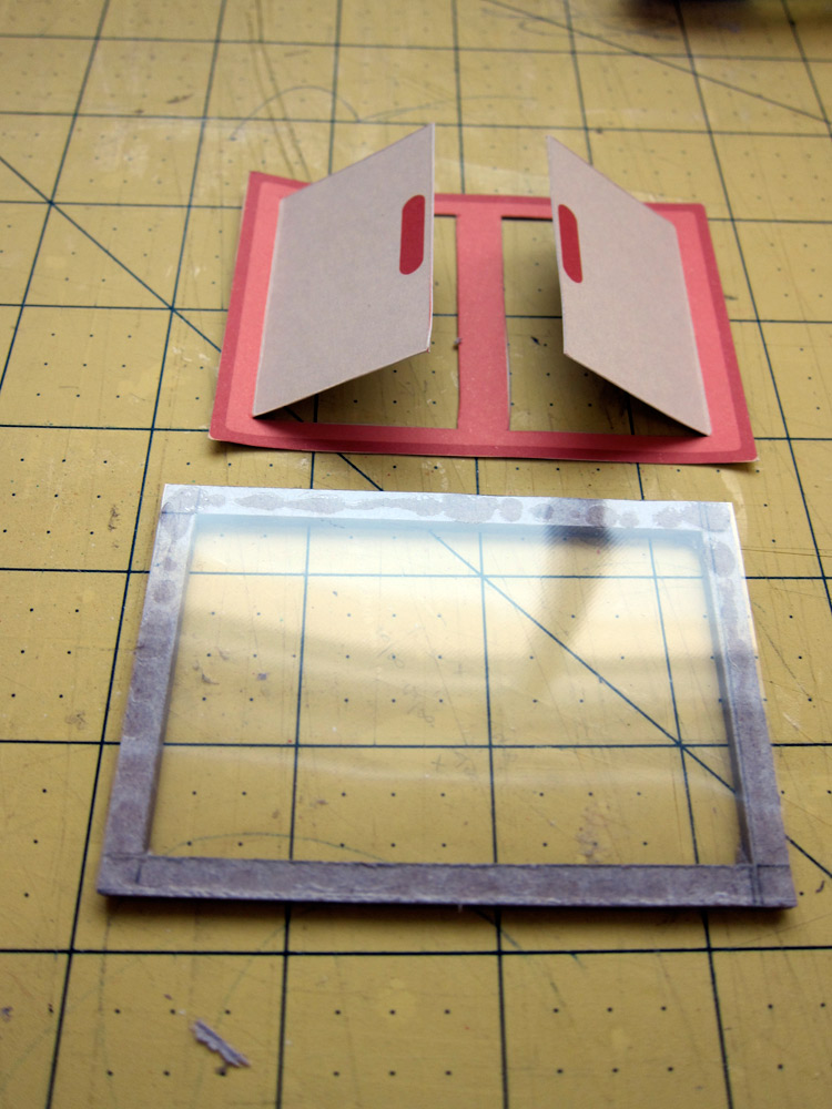 Para fazer seu Shaker Box, recorte um dos armarios do papel Daidokoro. Abra as "janelinhas" com estilete. Recorte um pedaço de chipboard do tamanho da janelinha. Vase ele , deixando só a "moldura". Use a janelinha como medida, já que o chipboard ficará em baixo e sem aparecer!!!!