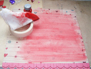 Com um pano macio, espalhe uma camada fina de tinta vermelha pela fita crepe.