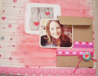 Agora posicione seu título, na aba do envelope eu ainda colei um coração sobre o outro e finalizei com um botão, percebe?